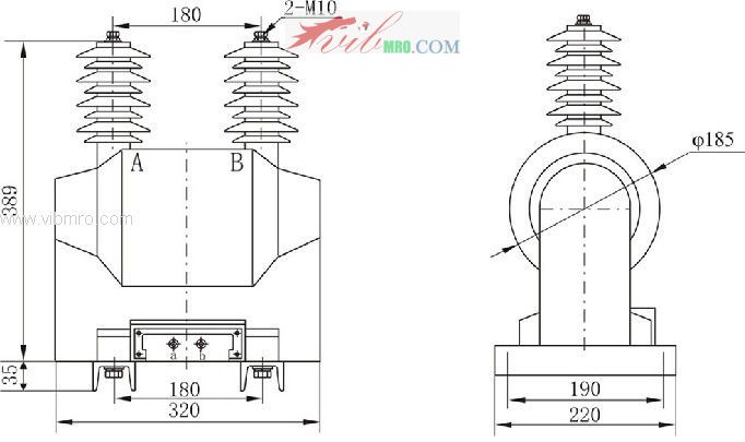 本型电压互感器为户外环氧树脂浇注绝缘全封闭结构。适用于交流50Hz,额定电压10KV及以下的电力系统中作电压、电能测量和继电保护用。适用于农村户外变电站,也可适用于工业、小型企业、配电所。本型电压互感器为支柱式结构,采用户外环氧树脂全封闭浇注,具有耐电弧,耐紫外线,耐老化,寿命长等特点。由于互感器采用全封闭浇注绝缘,尺寸小,重量轻,适用于任何位置,任意方向安装。二次出线端有接线保护罩,其下方有出线孔,并能实现防窃电措施。安全可靠,底座槽钢上有4个安装孔。 型号含义 J --- 电压互感器 D --- 单相 Z --- 浇注绝缘 W --- 户外装置 12 --- 设备最高电压 概述 本型产品为户外全封闭式电压互感器,本产品采用具有耐电弧、耐紫外线,耐老化的户外专用绝缘树脂(瑞士 Ciba Cw5837) 浇注成形。适用于户外交流50-60Hz,额定电压为10kv及以下电力系统中作电压测量、电能计量用。 技术参数 外形及安装尺寸 接线图