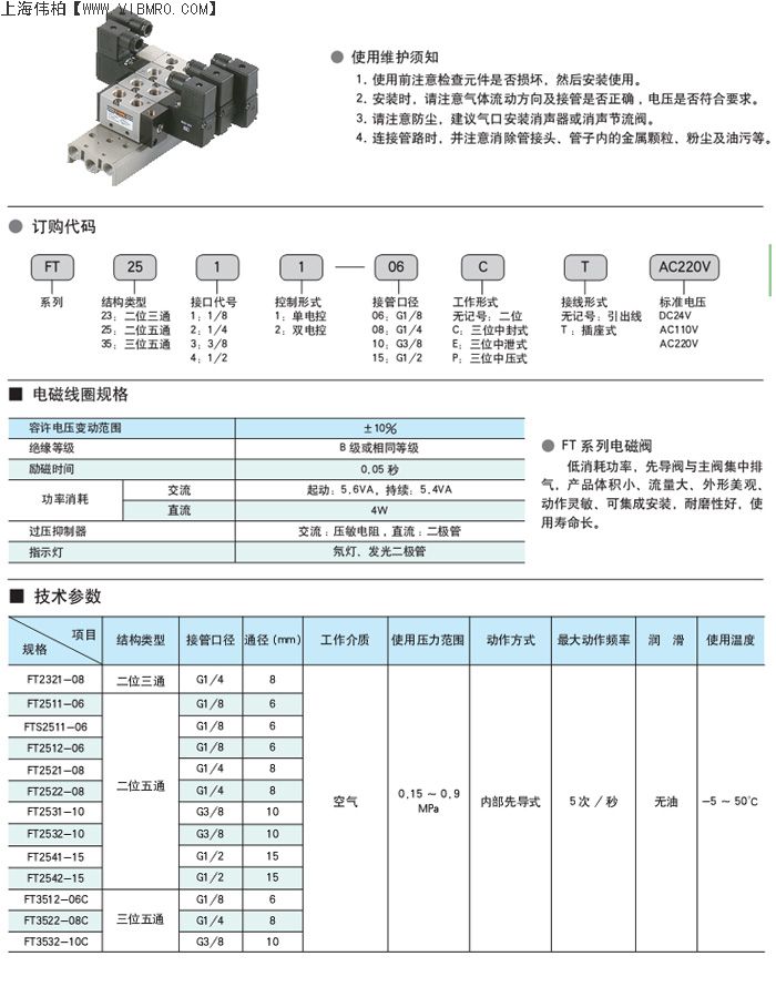 FT2522-08,STNC电磁阀,FT系列电磁阀