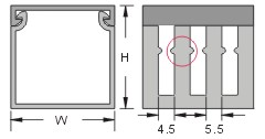 | 构造: | 由槽底及槽盖两部份组成,底槽两侧设出线孔,出线孔4.5mm,以组合后外部之宽、高为规格标准,每侧设有一条刀割式折痕。UL测试温度50℃。 | |
