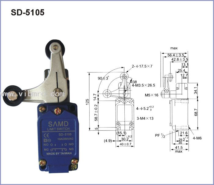 产品标题:台湾SAMD山电,详细图片,安装尺寸,参数,价格,SD5105,SD-5105行程开关
