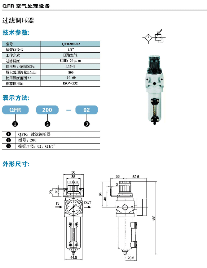 产品标题:QFR200-02,过滤调压器,SDPC盛达,QFR过滤调压器